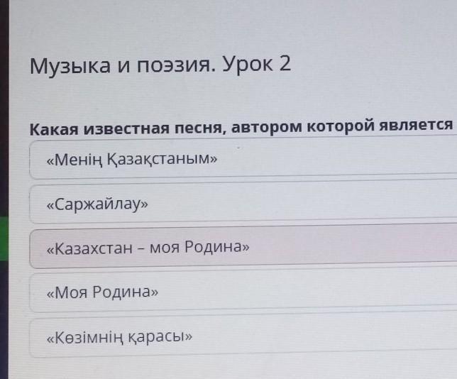 Для русских которые не поняли ответ:"Менің Қазақстаным"