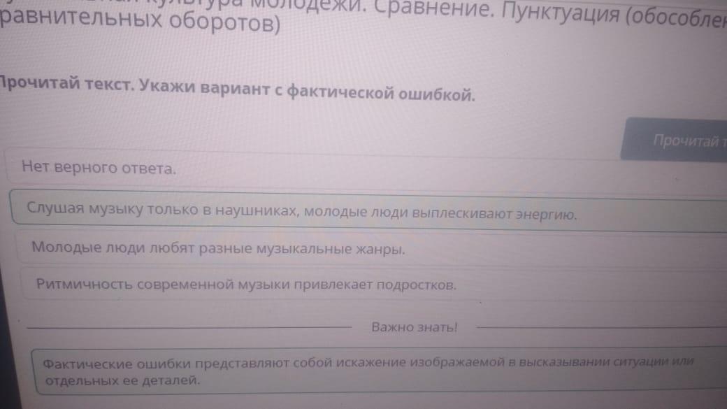 Музыкальная культура молодежи. Сравнение. Пунктуация (обособление сравнительных оборотов) Прочитай текст укажи вариант с фактической ошибкой.