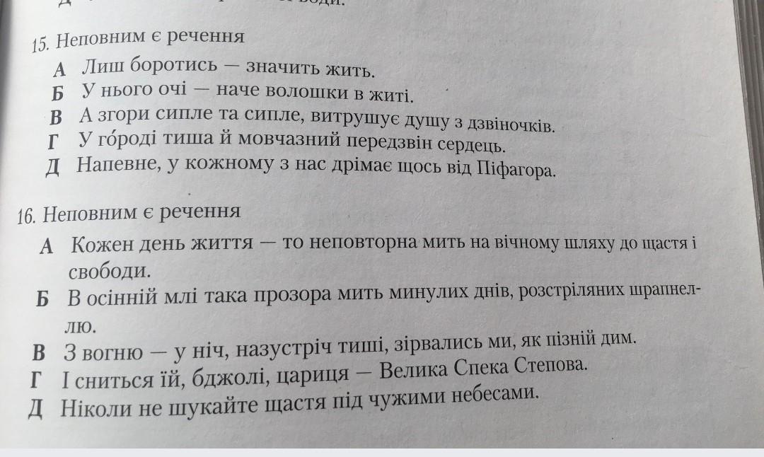 Неповні речення — це речення, в яких пропущено один чи декілька потрібних для його структури членів, що встановлюється з попереднього речення чи ситуації мовлення.