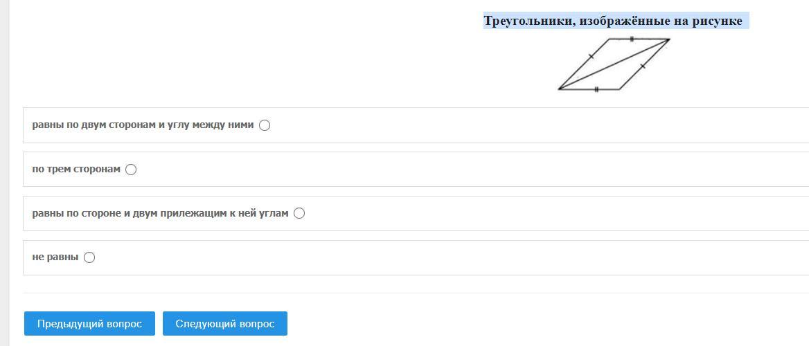 Равны по трем сторонам. Две равны по условию, третья - диагональ - общая