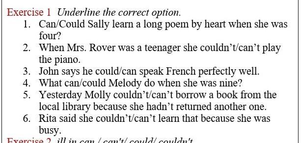 1) could (прошедшее время) 2) сouldn't (прошлое) 3) can (наст.время) 4)сould (прошлое) 5)couldn't 6) couldn't