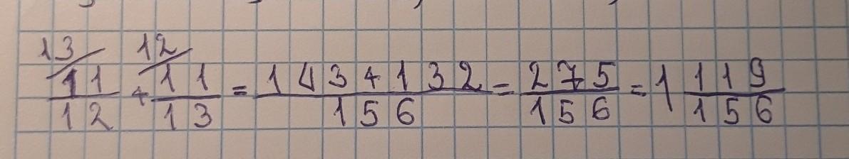 обьяснение: 11/12=0,9. 11/13=0,8. 0,9+0,8 = 1,7