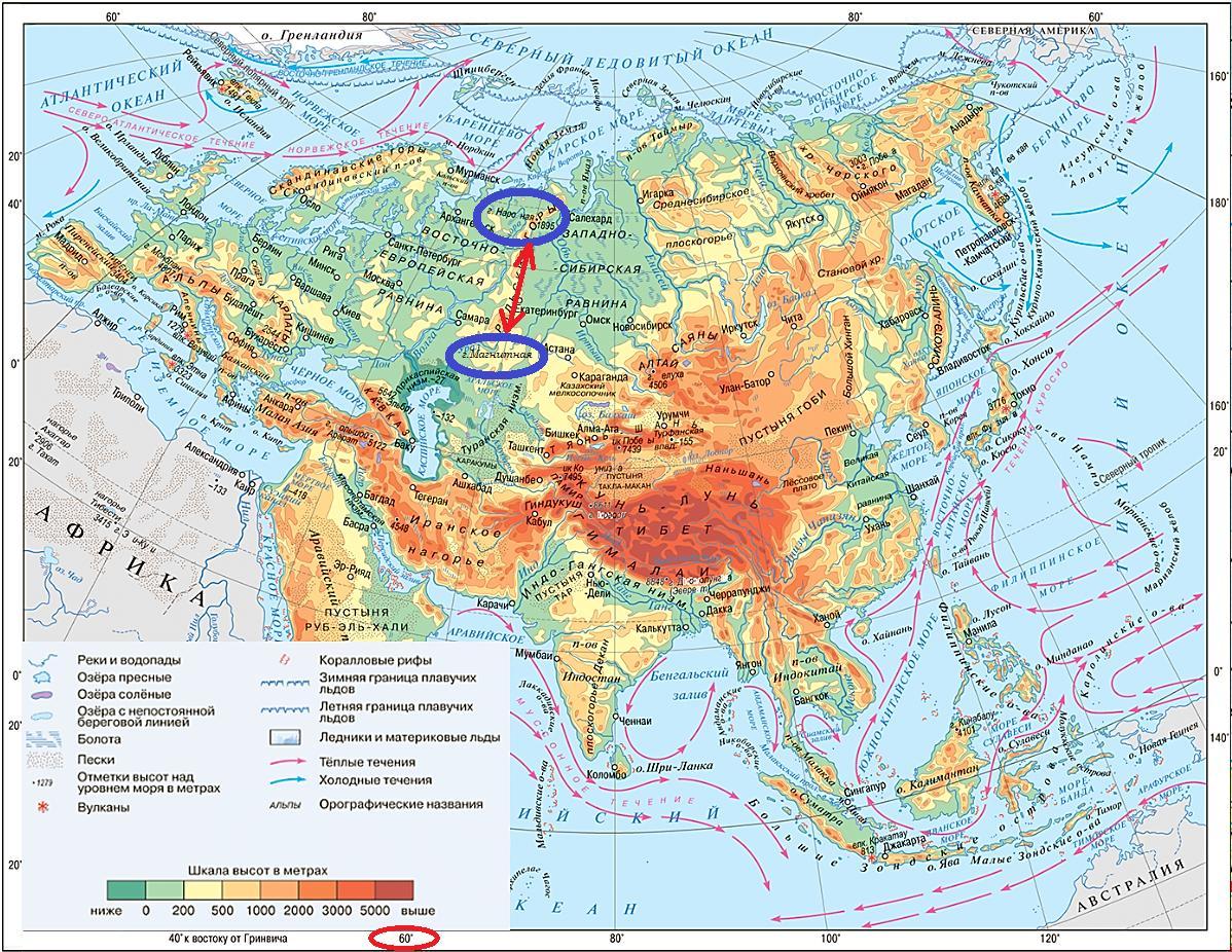 30 БАЛЛОВ! 6 класс. Как определить расстояние между точками в градусах. Например в учебнике написано что расстояние вдоль меридиана 60 градусов в.д между горой Магнитная (53,5 с.ш.) и горой Народная (65 градусов с.ш.) Разница 11,5. Подскажите, почему 11? И как узнать расстояние в градусах