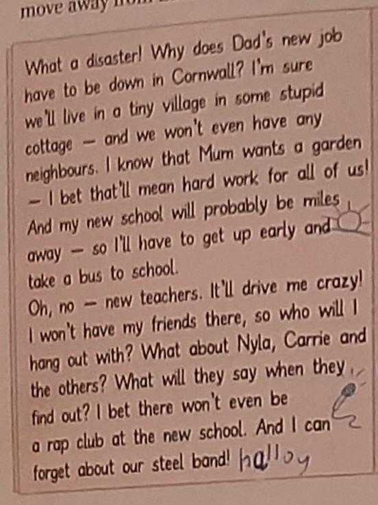 отойти Какая катастрофа! Почему новая работа папы должна быть в Корнуолле? Я уверен, что мы будем жить в маленькой деревушке в каком-нибудь дурацком коттедже - и у нас даже не будет соседей. Я знаю, что мама хочет сад - держу пари, что это будет тяжелая работа для всех нас! И моя новая школа, вероятно, будет за много миль отсюда, так что мне придется рано вставать и ехать в школу на автобусе. ПАМИ О нет, новые учителя. Это сведет меня с ума! У меня не будет там моих друзей, так с кем я буду тусоваться? А что насчет Нейлы, Кэрри и других? Что они скажут, когда узнают? Бьюсь об заклад, в новой школе не будет даже рабочего клуба. И я могу забыть о нашей стальной группе!
