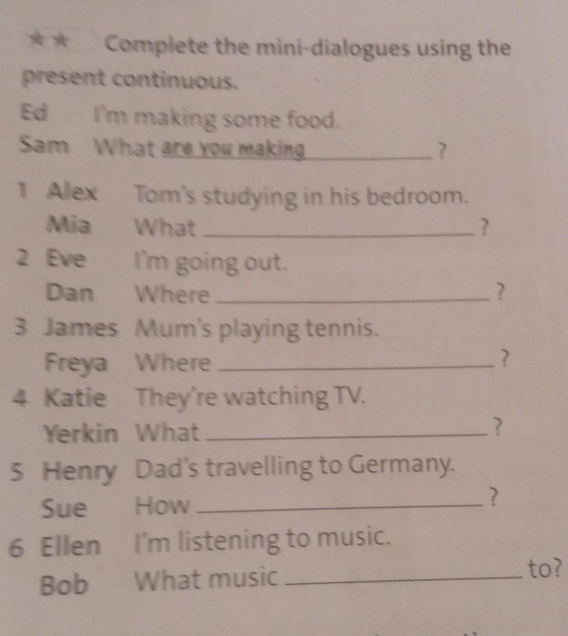 Complete The Mini dialogues using The Present Continuous пятый класс Пожалуйста дайте ответ