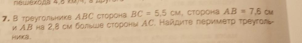7. В треугольнике ABC сторона ВС = 5,5 см, сторона АВ = 7,6 см