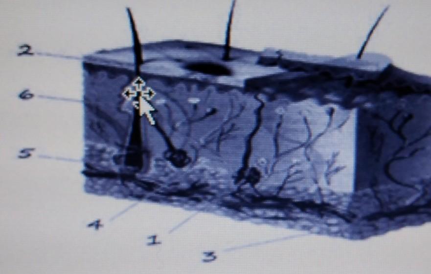 1 Выберите три правильные подписи к рисунку «Строение кожи». Запишите цифры, под которыми они указаны.
