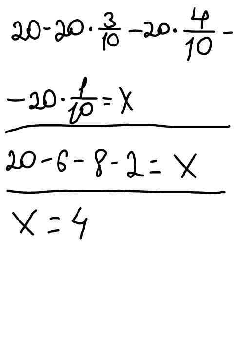 Тетя Озода приготовила 20 блинов. Азиза съела три десятых, Наргиза четыре десятых, а Дильноза-одну десятую всех блинов. Сколько блинов осталось? С условием пожалуйста Это контрольная умаляю быстрее пожалуйста.