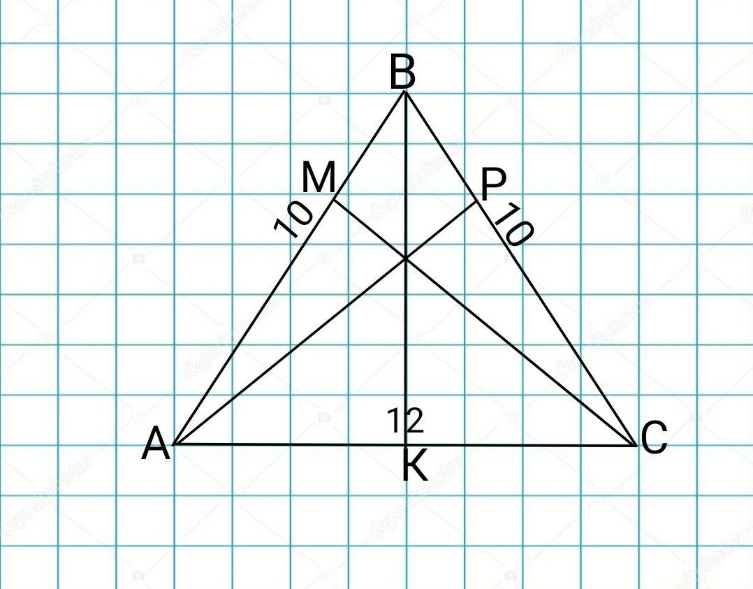 S=1/2*BK*AC=1/2*8*12=48см² площадь треугольника.
