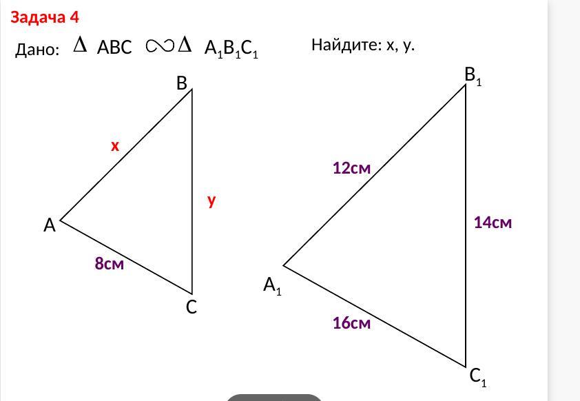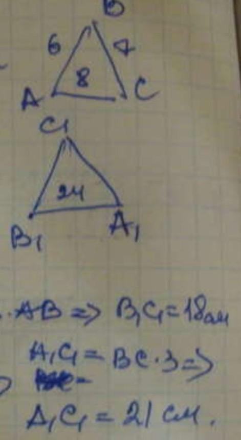 ответ ac/a1c1=8/16=1/2-коэффициент подобия