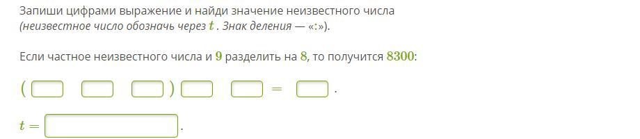 - частное неизвестного числа и 9(t:9) разделить на 8 — это (t:9):8.