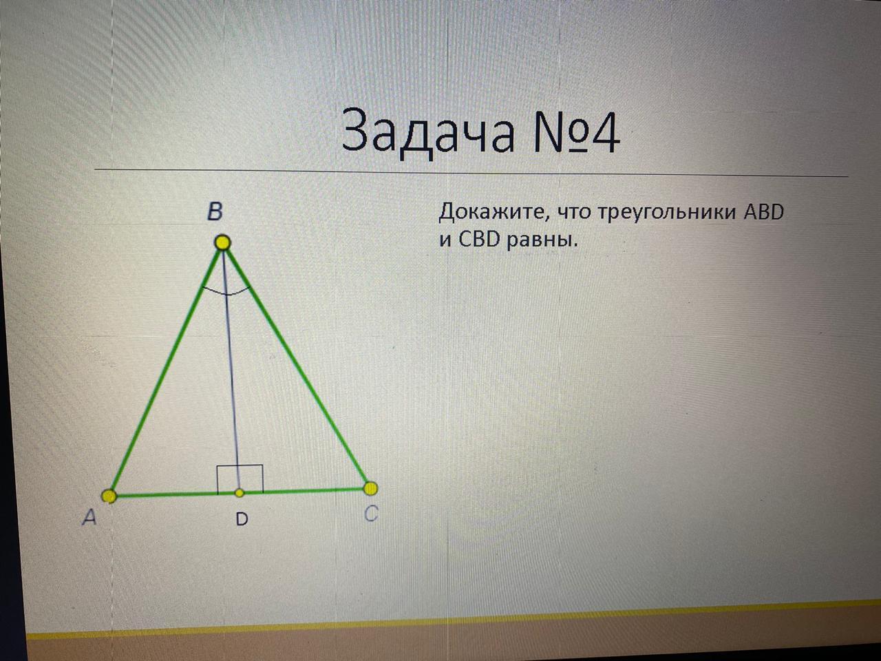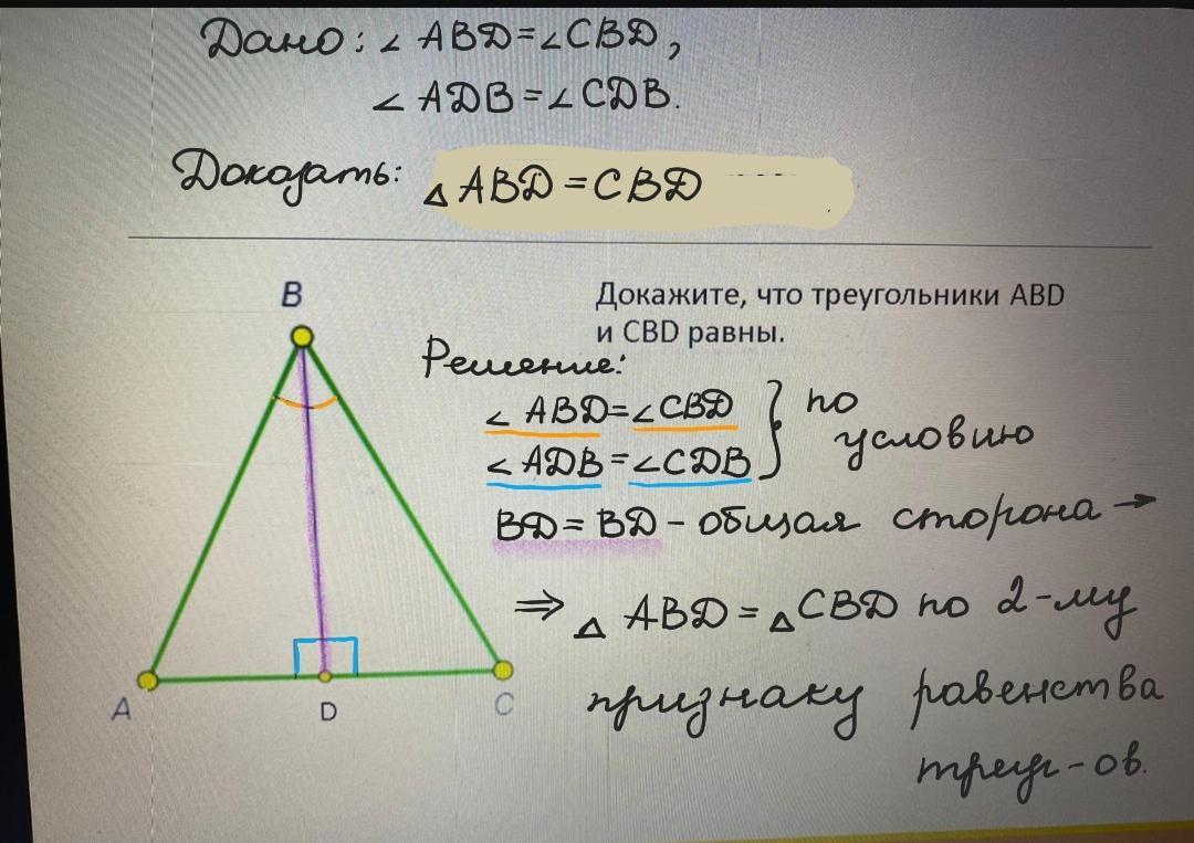 Второй признак равенства треугольников: