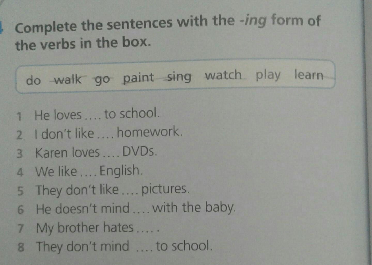 7. My brother hates singing - Мой брат ненавидит петь (пение).