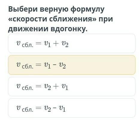 Чтобы найти скорость сближения при движения в догонку, нужно из 1-ой скорости вычесть 2-ую скорость