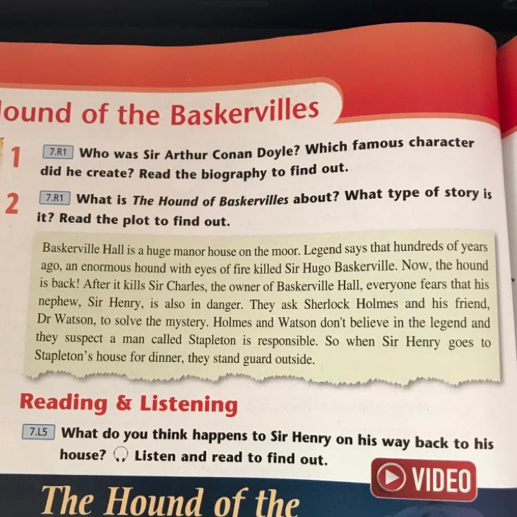 Baskerville Hall is a huge manor house. According to legends, an enormous hound with eyes of fire killed Sir Hugo Baskerville. Now, the hound is back. It killed the owner of Baskerville Hall. Sherlock Holmes and Dr Watson are going to solve the mystery. Holmes and Watson suspect a man called Stapleton is responsible.