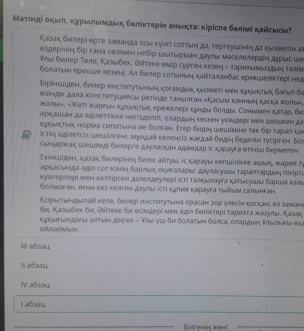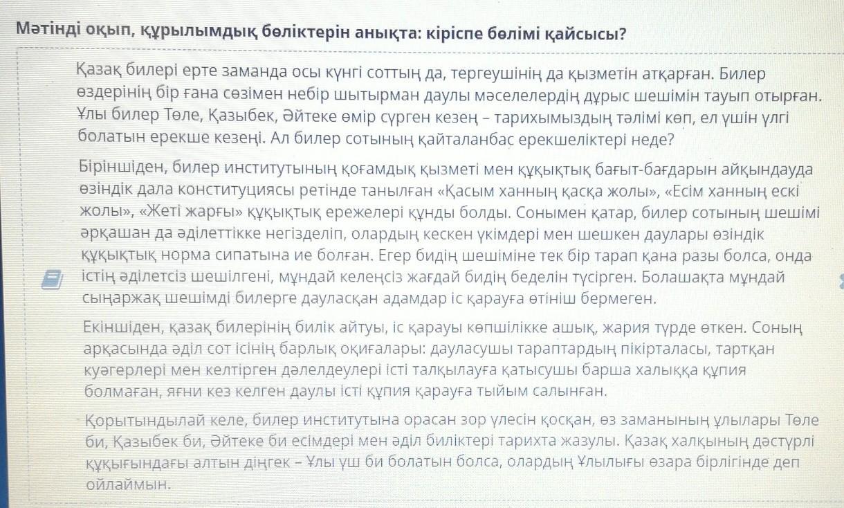 Мәтінді оқып, құрылымдық бөліктерін анықта: кіріспе бөлімі қайсысы?