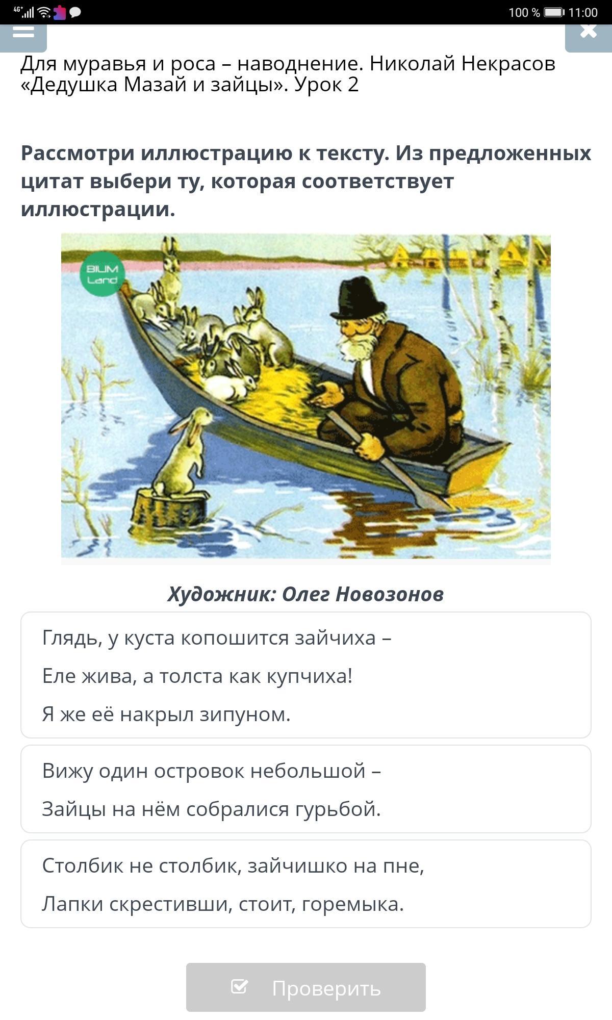 Рассмотри иллюстрацию к тексту. Из предложенных цитат выбери ту, которая соответствует иллюстрации. Художник: Олег Новозонов