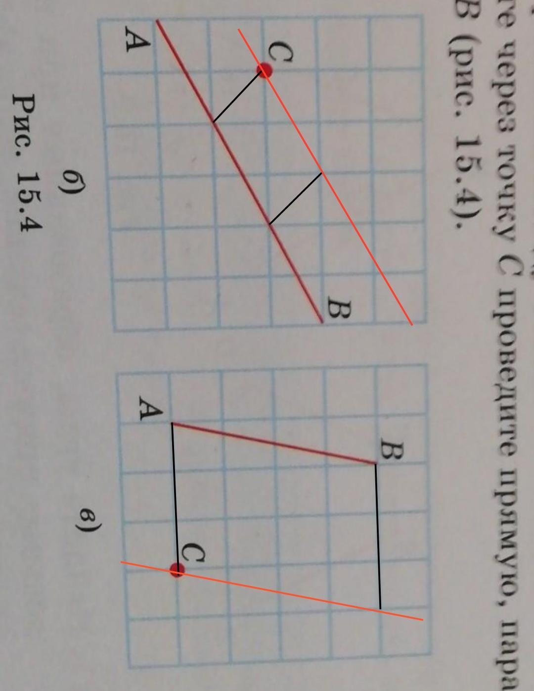 на клетчатой бумаге через точку С проведите прямую, параллельную прямой АВ (рис.15.4)