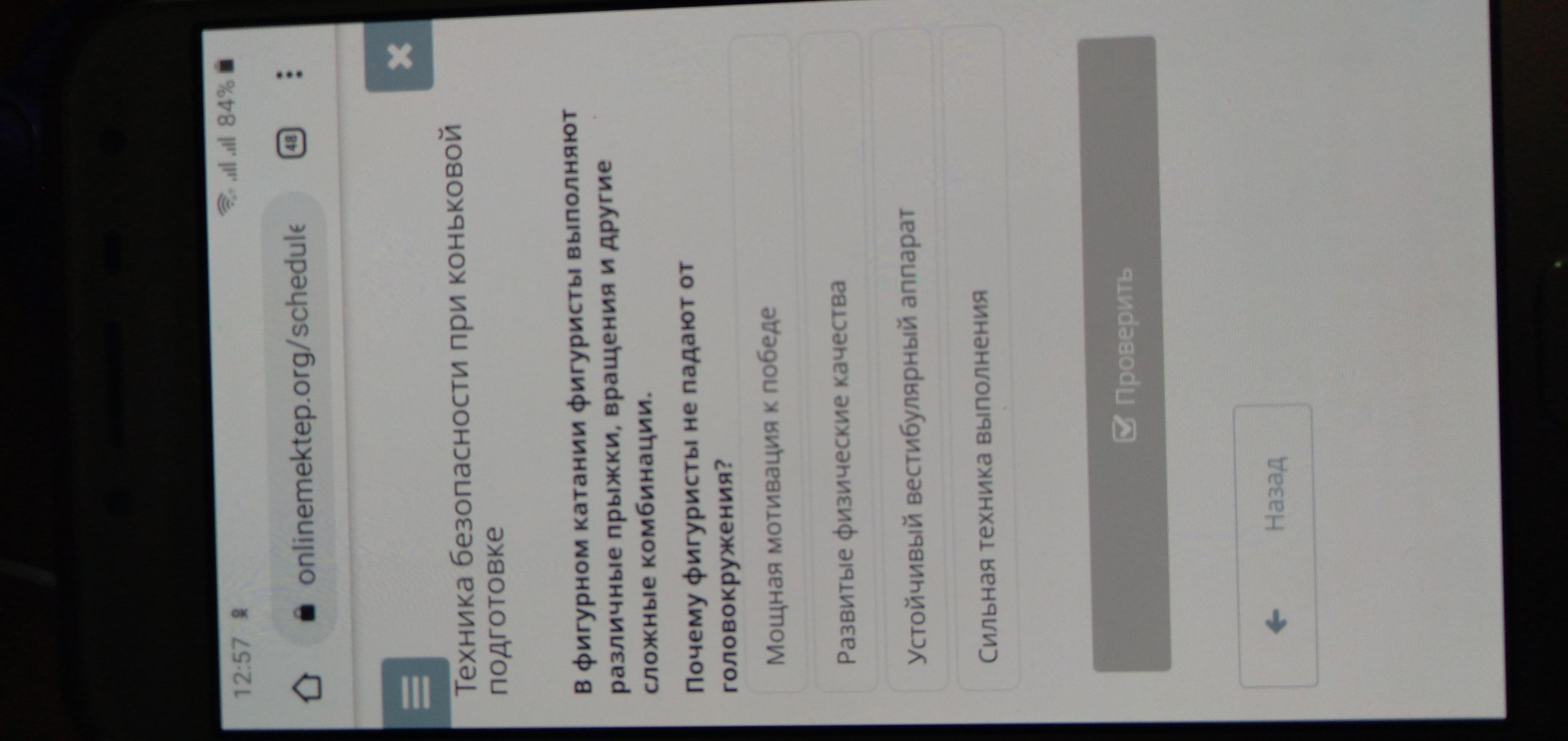 В фигурном катании фигуристы выполняют различные прыжки, вращения и другие сложные комбинации. Почему фигуристы не падают от головокружения. Пажалуйста помогите СРОЧНО!!!!!!