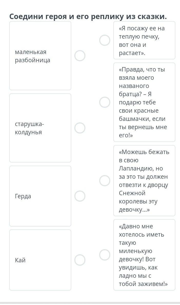 о дружбе верности любви г.х Андерсон снежная Королева соедини героя и его реплику из сказки