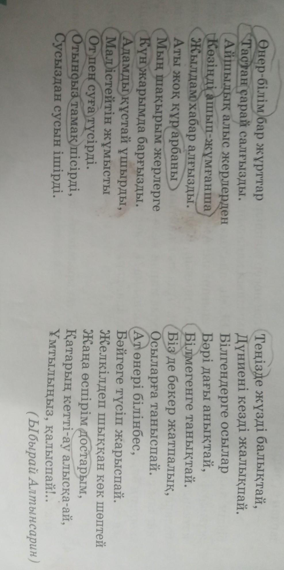 3. Оқылым мәтінін негізге алып, деңгейлік тапсырманы орындандар. 1-деңгей. Мәтіннен деректі, дерексіз зат есімдерді топтастырып жазындар. 2-деңгей. Дерексіз зат есімдерге жұрнақ жалғап, туынды сөз жасаңдар. 3-деңгей. Өлеңдегі ғажайып сипатка ие оқиғаларды бүгінгі күнмен салыстырып, кес тені толтырыңдар. Үлгі: Ы.Алтынсариннің өлеңінде Айшылық алыс жерлерден... Жылдам хабар алғызды. Бүгінгі танда Телефон, ғаламтор, факс, телеграмма, т.б.