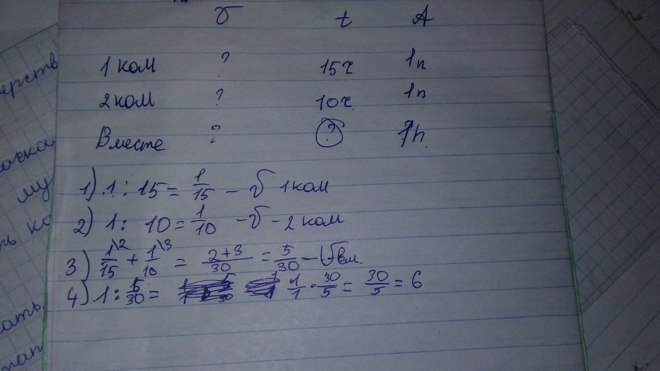 Первый комбайн собирает урожай с поля за 15 часов, второй комбайн за 10 часов. За сколько часов соберут урожай комбайны работая совместно?