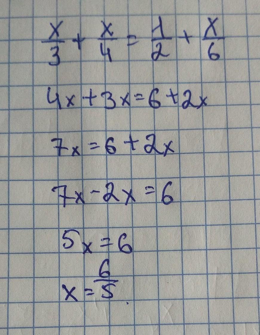 найди решения уравнения x/3+x/4=1/2+x/6 памагите пожалуйста
