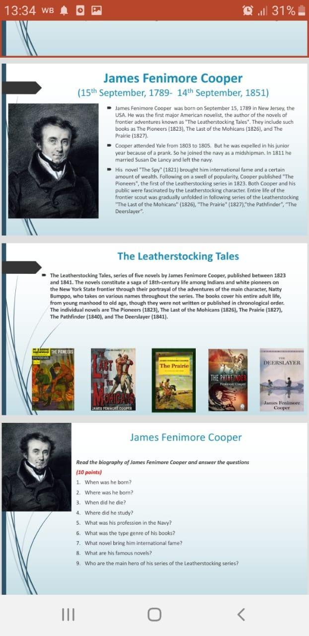 8) ,,the pioneers,, ,, the last of the Mohicans ,, ,, the prairie,,