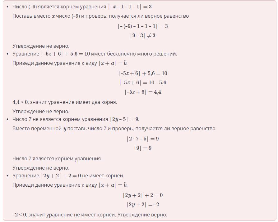 3)Число 7 не является корнем уравнения |2y – 5| = 9