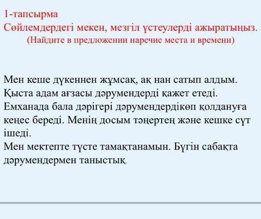 Сөйлемдердегі мекен, мезгіл үстеулерді ажыратыңыз.