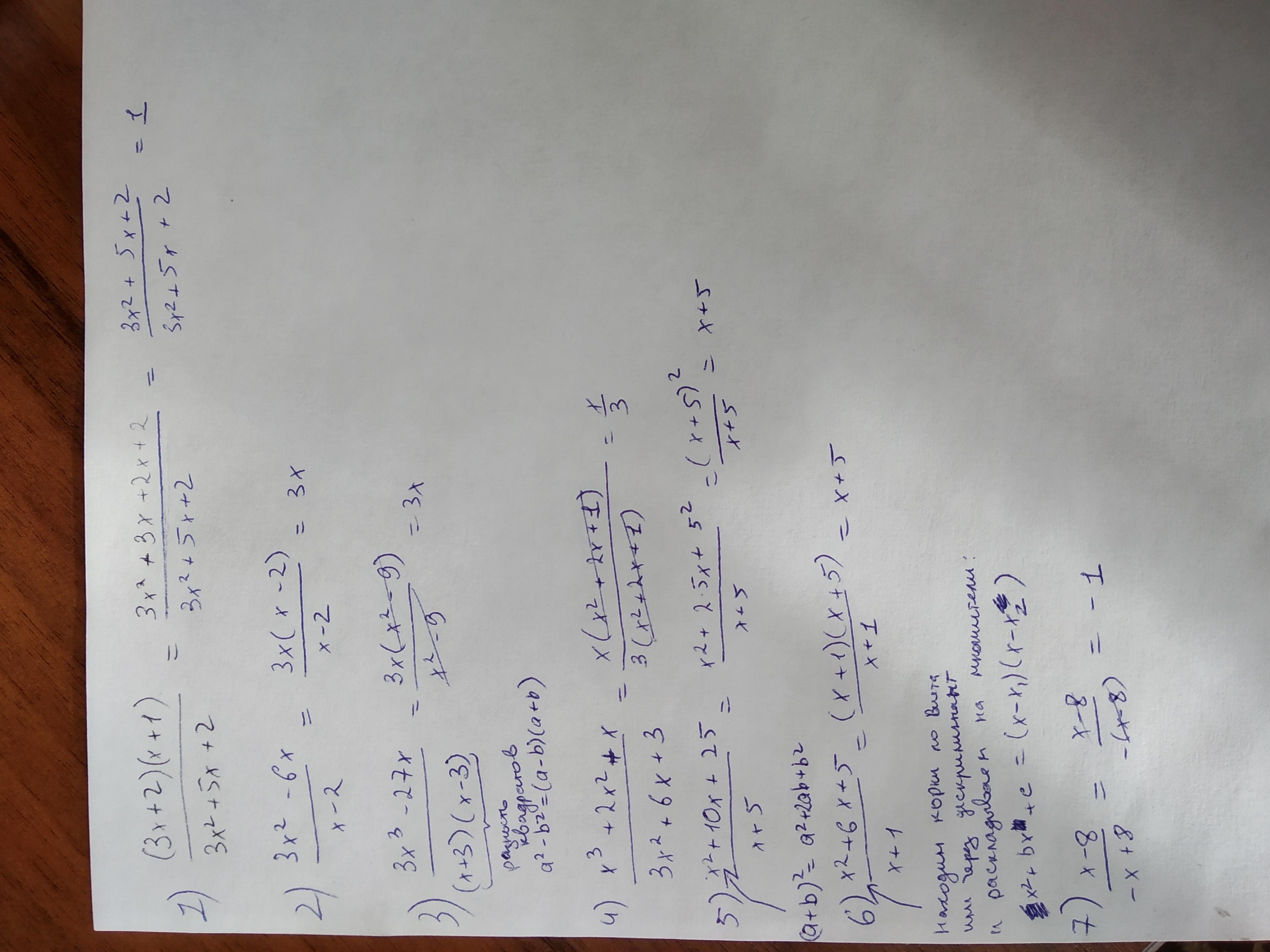 (3х+2)(х+1)/3х²+5х+2= 3х²+3х+2х+2/3х²+5х+2= 3х²+5х+2/3х²+5х+2=1