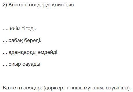 Қажетті сөздер: (дәрігер, тігінші, мұғалім, сауыншы).