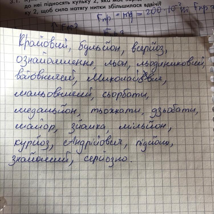 Кра..вий, буль..н, всер..з, озна..млення, л..н, л..дяниковий, во..вничий, Мурав..в, Микола..вич, мал..вничий, с..рбати, медаль..н, т..хкати, дз..бати, ма..р, з..мка, міль..н, кур..з, Андрі..вич, під..м, зна..мий, сер..зно,