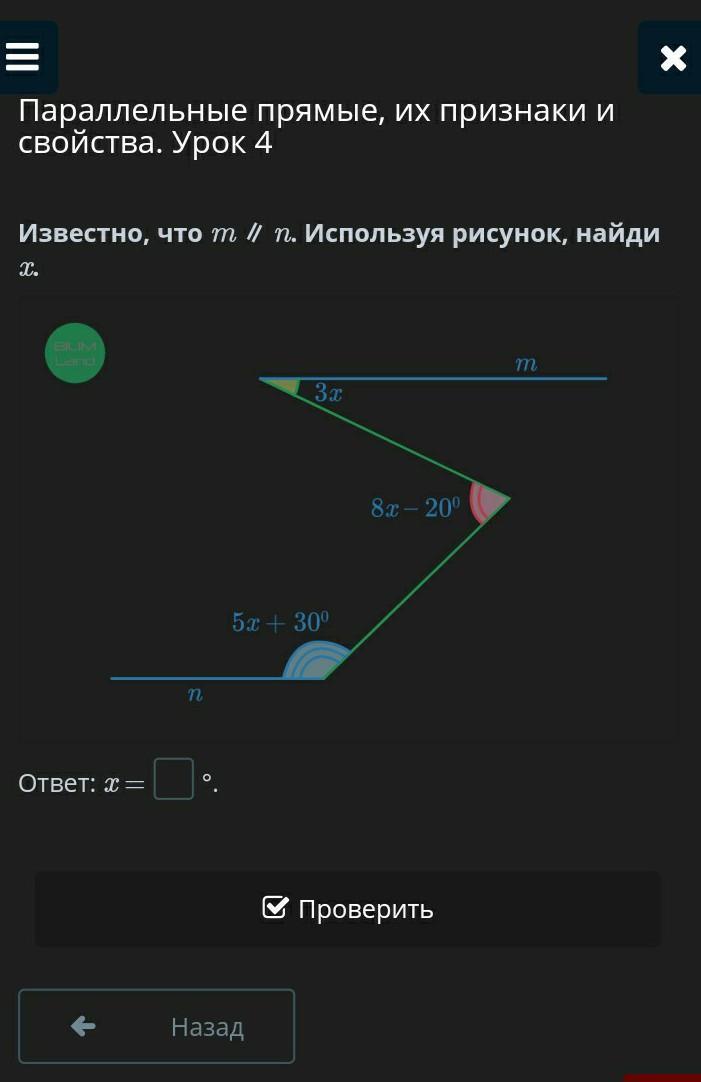Известно, что m ∥ n. Используя рисунок, найди x.