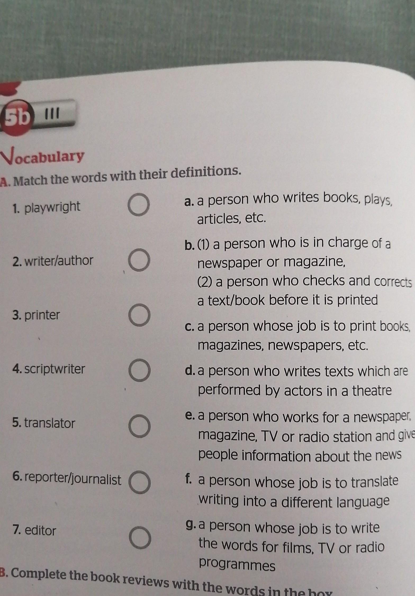 A. Match the words with their definitions.