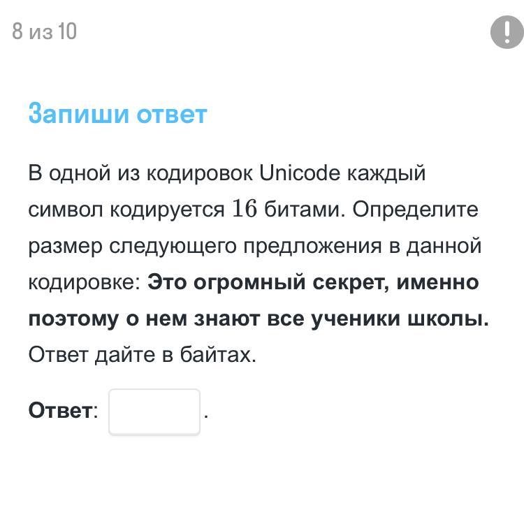 134 байта тут 67 символов или 1072 битов если перевести в байты то получится 134