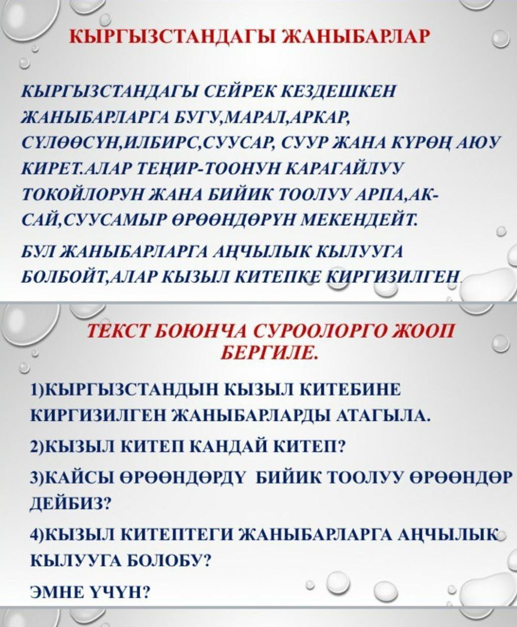 Кыргызстандын кызыл китебине киргизилген жаныбарлар: