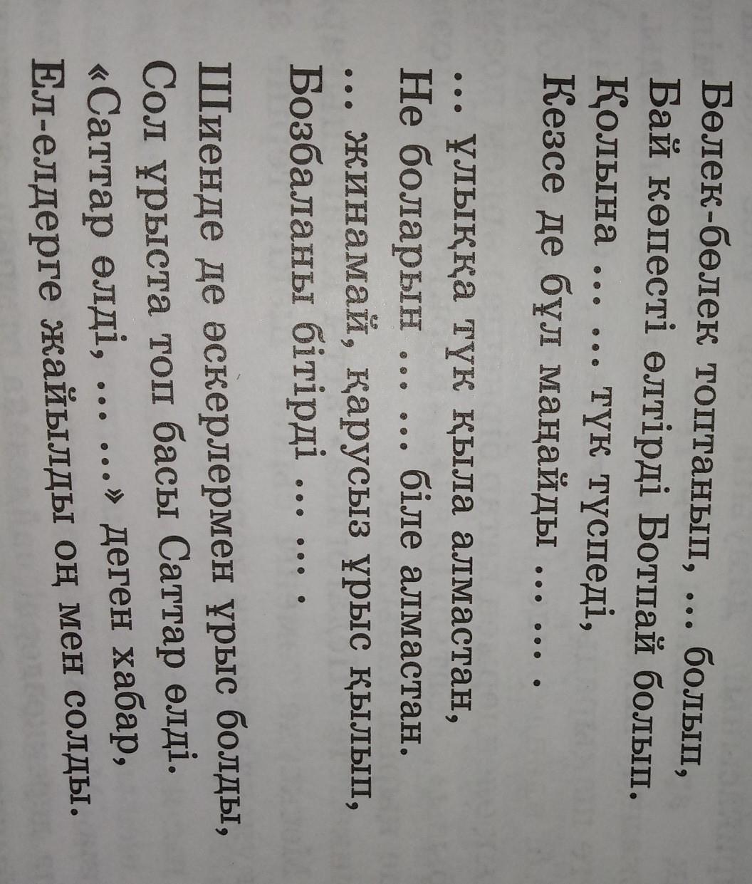 : Мәтінді тыңдай отырып, көп нүктенің орнына қажетті сөздерді