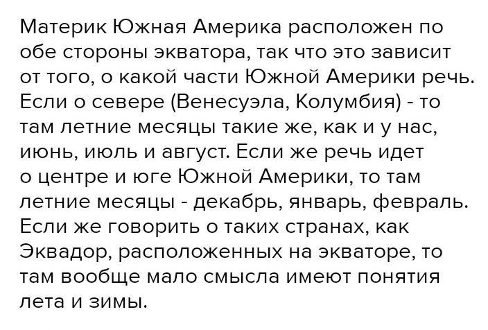 Материк Южная Америка расположен по обе стороны экватора, так что это зависит от того, о какой части Южной Америки речь. Если о севере (Венесуэла, Колумбия) - то там летние месяцы такие же, как и у нас, июнь, июль и август. Если же речь идет о центре и юге Южной Америки, то там летние месяцы - декабрь, январь, февраль