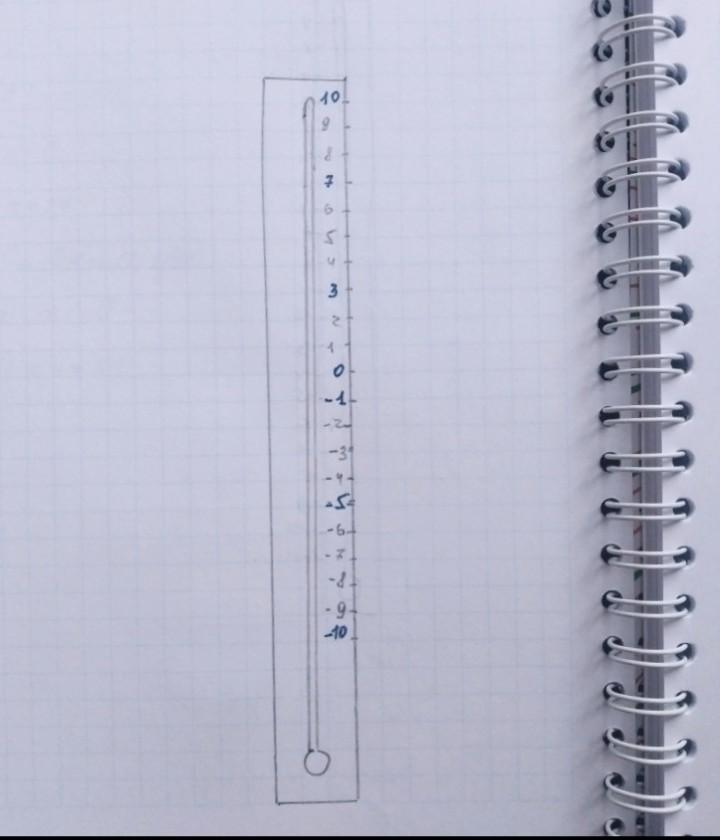 Нарисуйте термометр. Отметьте на нём следующее температуры 1) +10°C, 2)+ 7°C, 3) +3°C, 4) 0°C, 5) -1°C, 6) -5°C, 7) -10°C