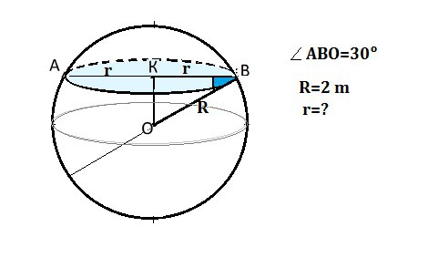 Диаметр шара равен 4m.Через конец диаметра проведена плоскость под углом 30 градусов к нему.Найдите площадь сечения шара этой плоскостью. 11 КЛАСС РЕШИТЬ ПОДРОБНО И НАРИСОВАТЬ РИСУНОК