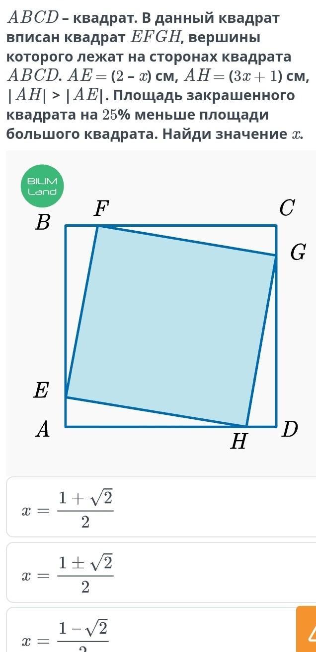 ABCD квадрат в данный квадрат вписан квадрат вершины которого лежат на сторонах квадрата АВСD.