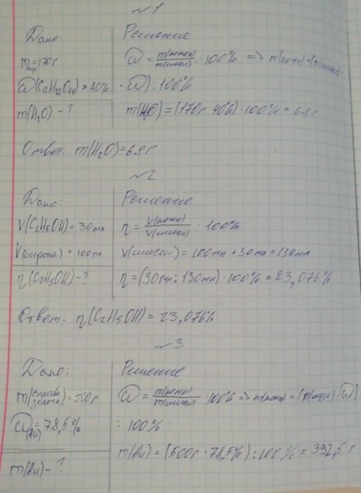 Как приготовить 170 г 40%-го сахарного сиропа. 2. Рассчитайте объемную долю этилового спирта в ликере «Домашний», если его приготовили из 30 мл спирта и 100 мл сиропа. 3. Сколько г золота содержится в 500 г золотого сплава 785 пробы?