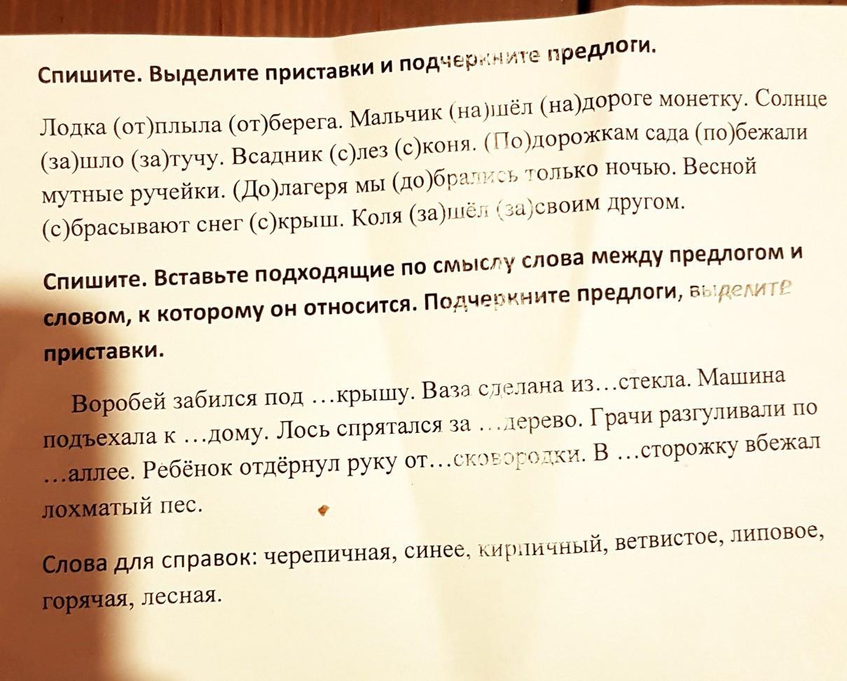 Лодка отплыла от берега. Мальчик нашёл на дороге монетку. Солнце зашло за тучу. Всадник слез с коня. По дорожкам сада побежали мутные ручейки. До лагеря мы добрались только ночью. Весной сбрасывают снег с крыш. Коля зашёл за своим другом.