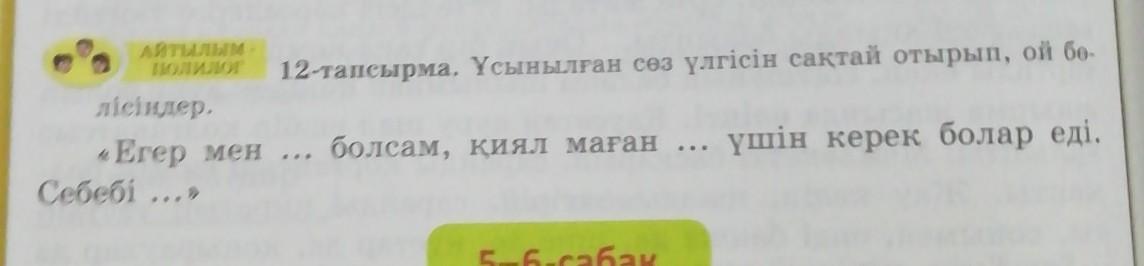 Ұсынылған сөз үлгісін сақтай отырып, ой бөлісіңдер.