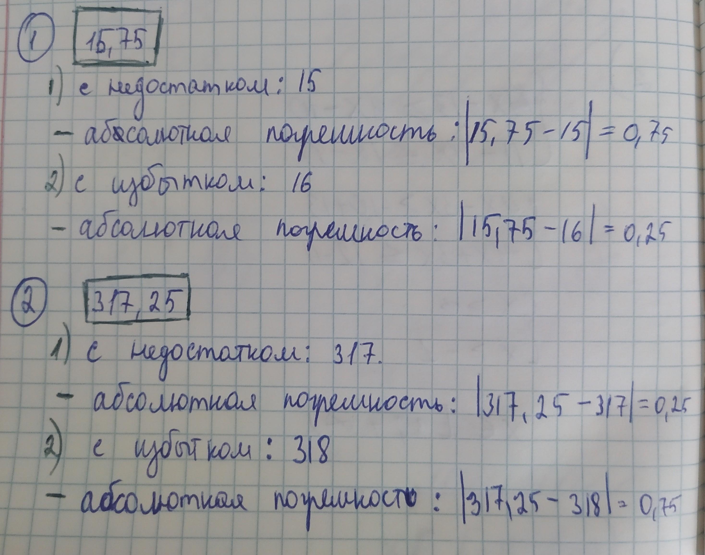 Округлите числа 15,75 и 317,25 до единиц с недостатком и с
