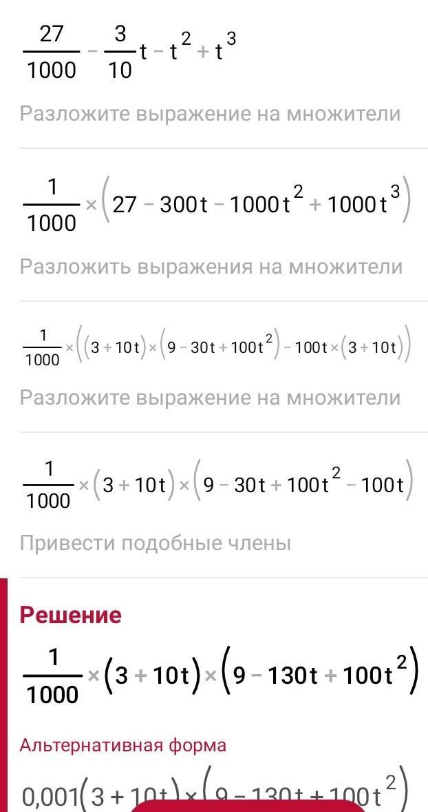 0.027 - 0.3t - t² + t³ = (0.3)³ + t³ - 0.3t - t² = (0.3 + t)(0.09-0.3t+t²) - t(0.3 +t) =