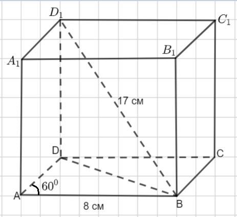 основа прямої призми - ромб зі стороною 8 см і кутом 60° менша діагональ призми дорівнює 17 см знайдіть об'єм призми
