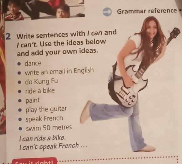 задание: написать то что ты можешь, а что нет используя can и can't и нижу представленые предложения.