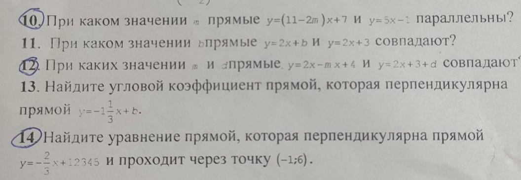 10. При каком значении m прямые y = (11 – 2m)x + 7 и y = 5x – 1 параллельны?